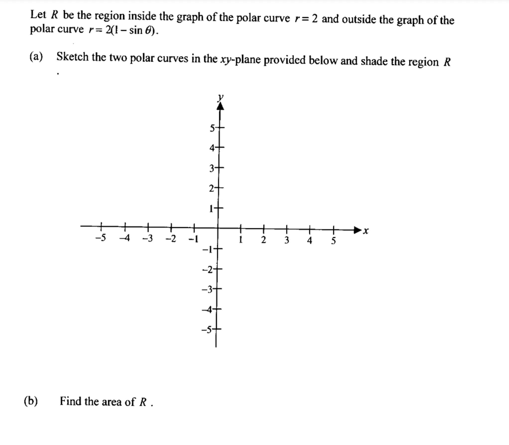 (a) Sketch the two polar curves in the -plane provided below and shade the region
