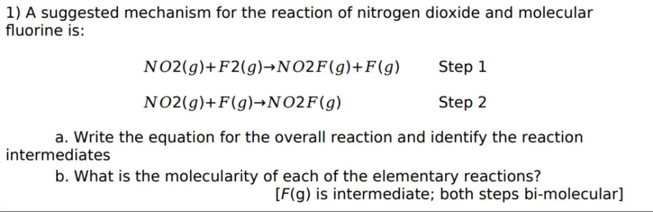 1) A suggested mechanism for the reaction of nitrogen dioxide and molecular fluorine is: