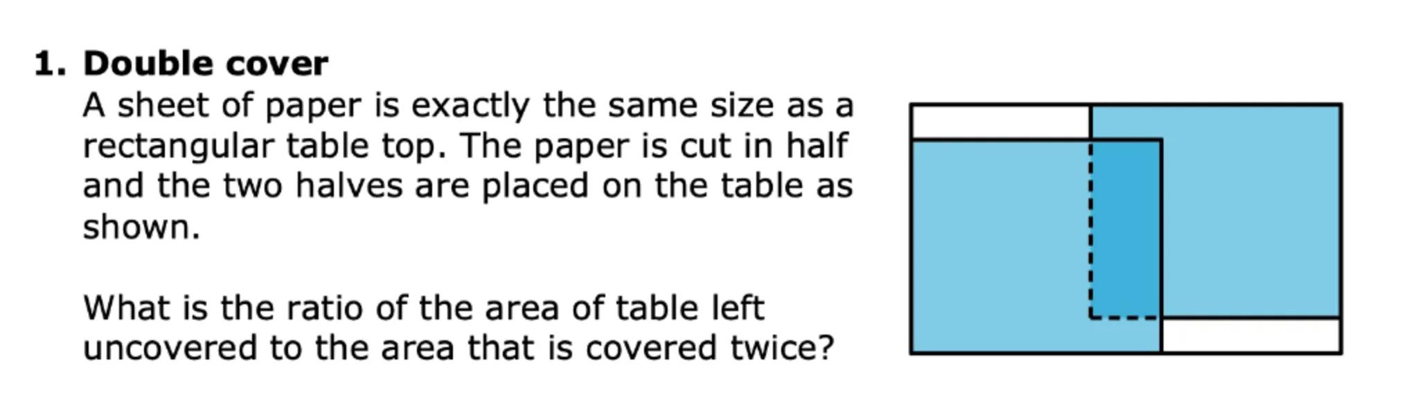 A sheet of paper is exactly the same size as a rectangular table top. The paper is cut in half and the two halves are placed on the table as shown.