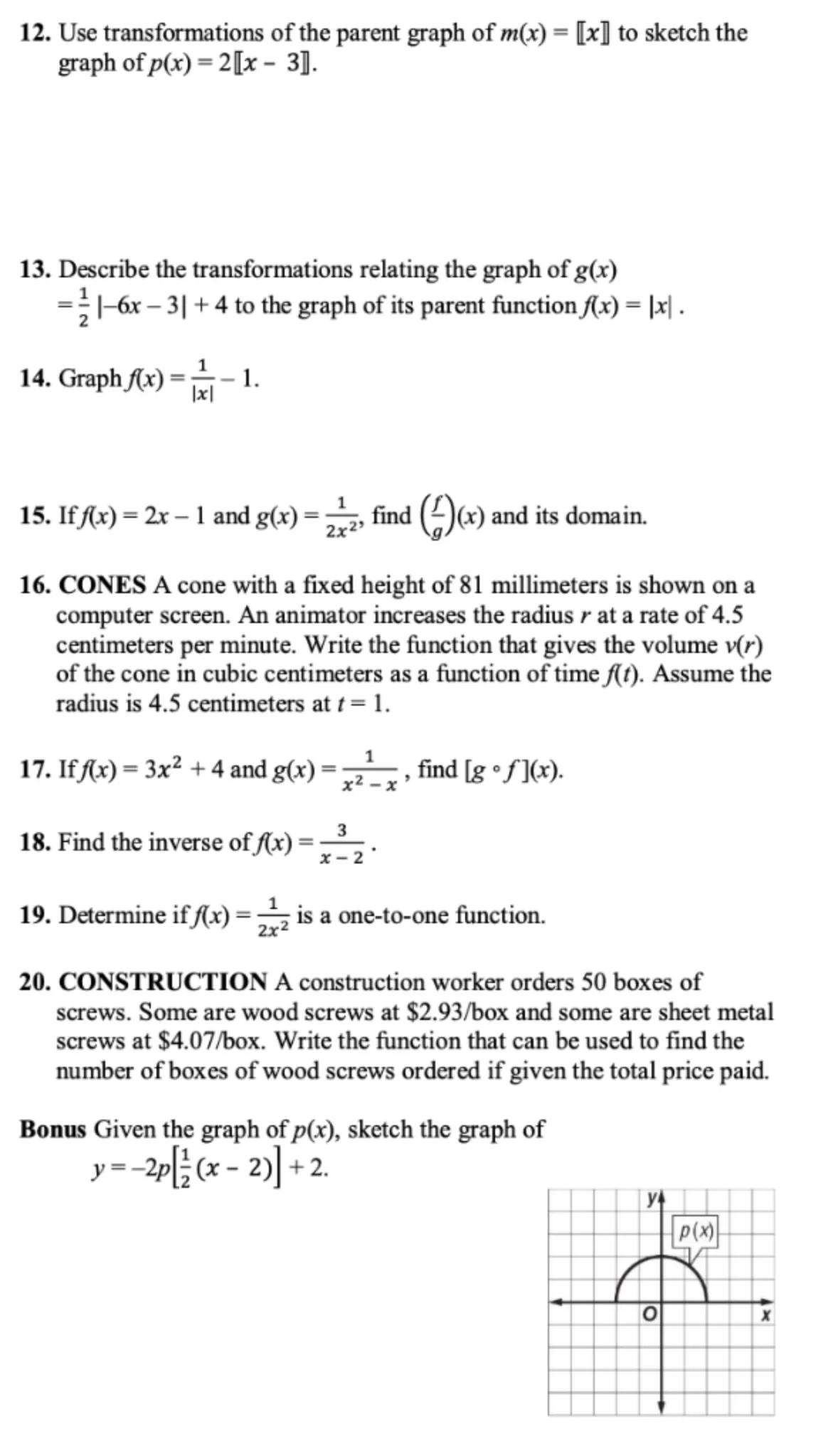 13. Describe the transformations relating the graph of to the graph of its parent function .