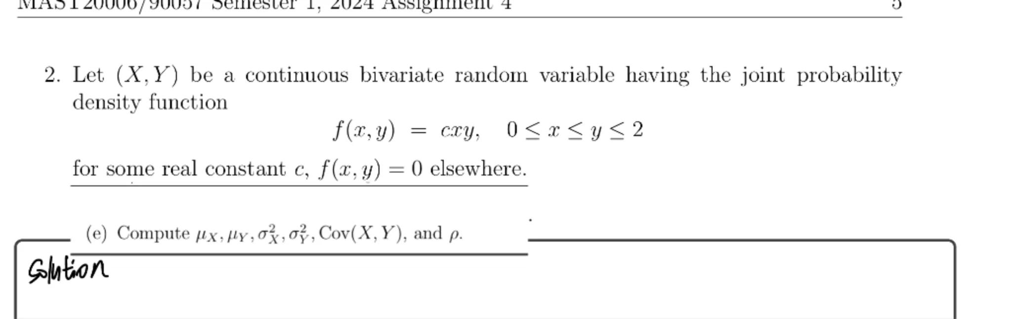 2. Let be a continuous bivariate random variable having the joint probability density function