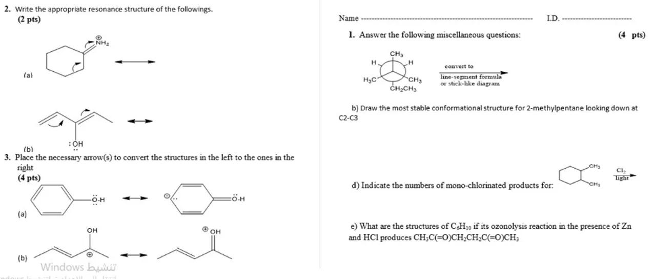 2. Write the appropriate resonance structure of the followings. pts)