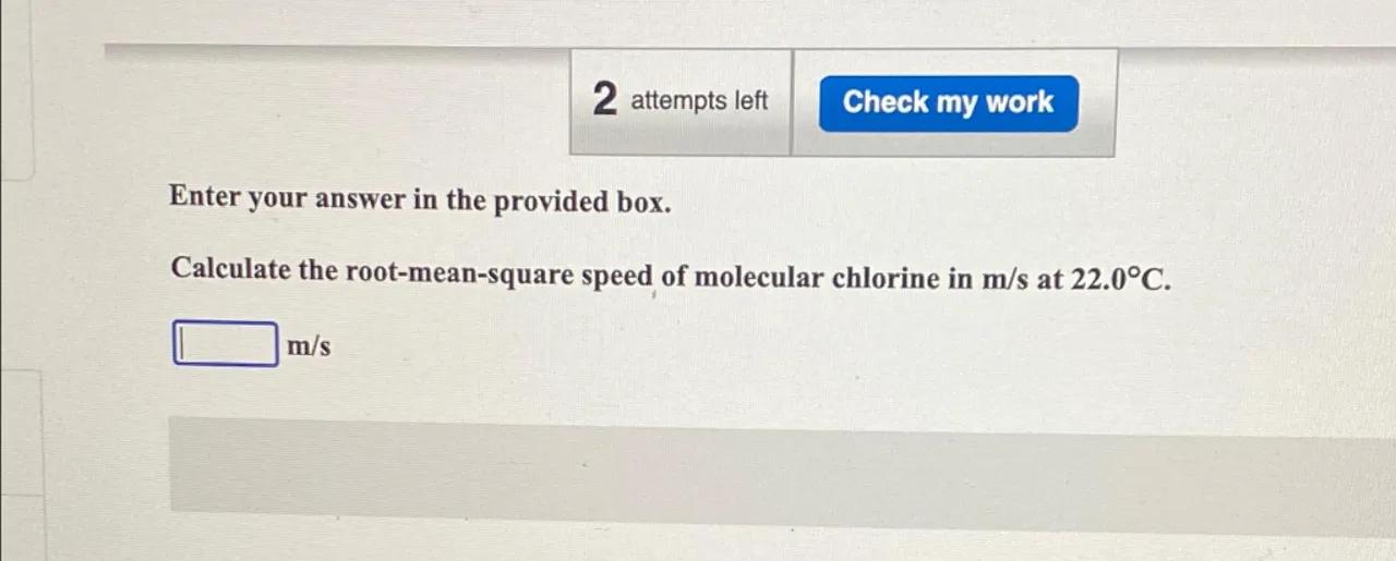 Calculate the root-mean-square speed of molecular chlorine in at .