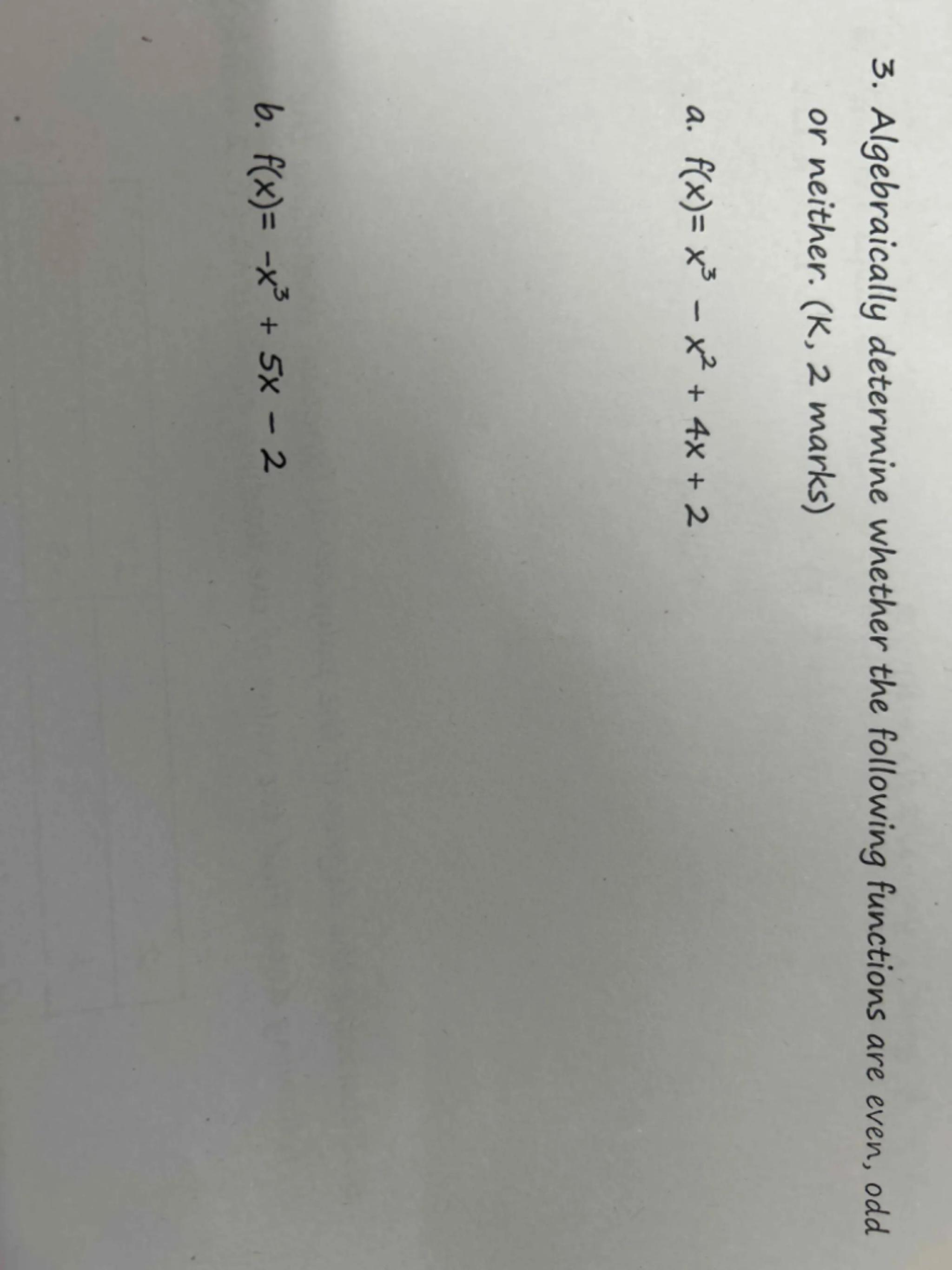 3. Algebraically determine whether the following functions are even, odd or neither. ( marks)