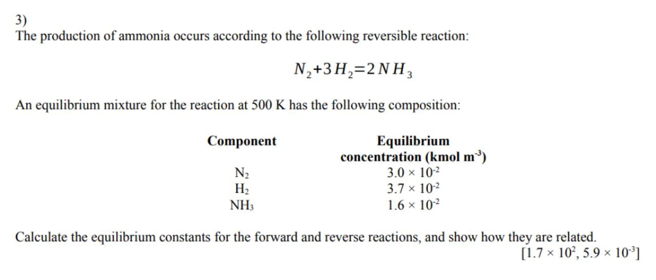Calculate the equilibrium constants for the forward and reverse reactions, and show how they are related.