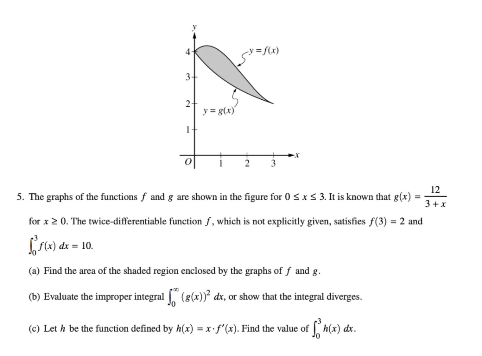 5. The graphs of the functions and are shown in the figure for . It is known that for . The twice-differentiable function , which is not explicitly given, satisfies and .
