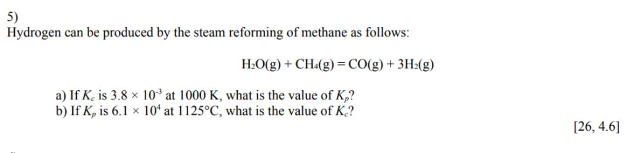 Hydrogen can be produced by the steam reforming of methane as follows: