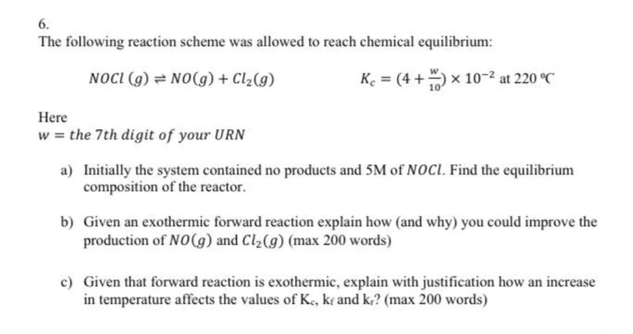 c) Given that forward reaction is exothermic, explain with justification how an increase in temperature affects the values of and ? (max 200 words)
