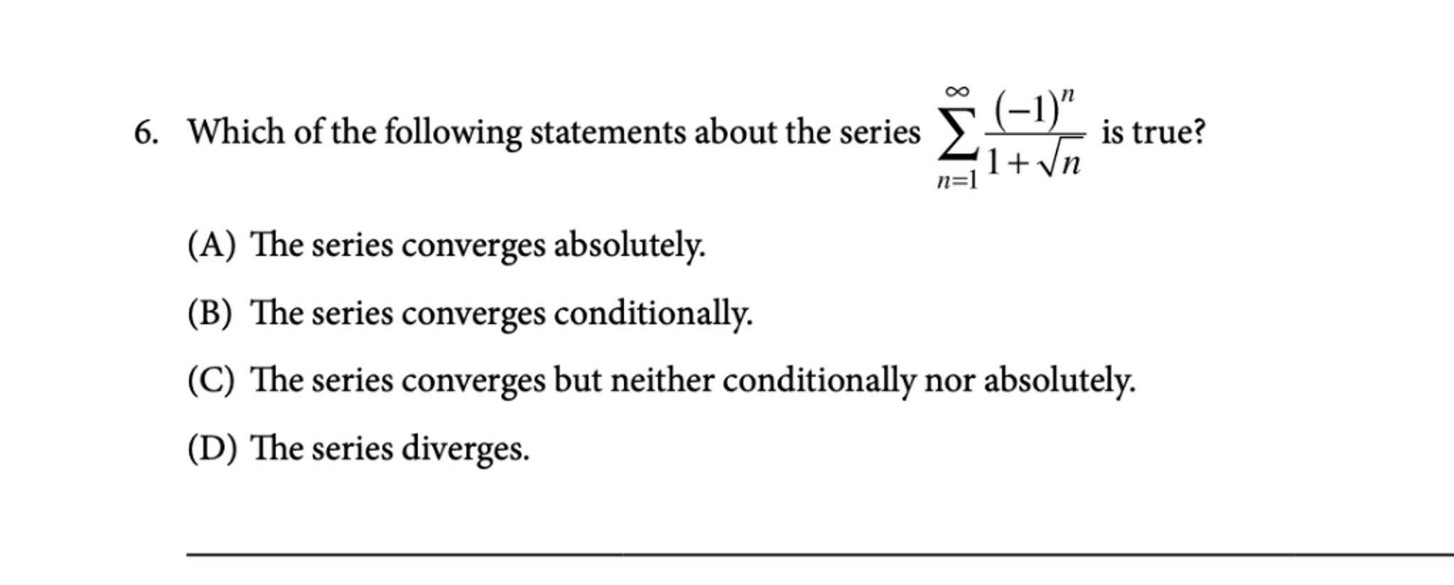 (A) The series converges absolutely.
