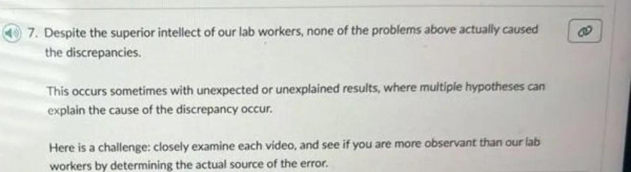7. Despite the superior intellect of our lab workers, none of the problems above actually caused the discrepancies.