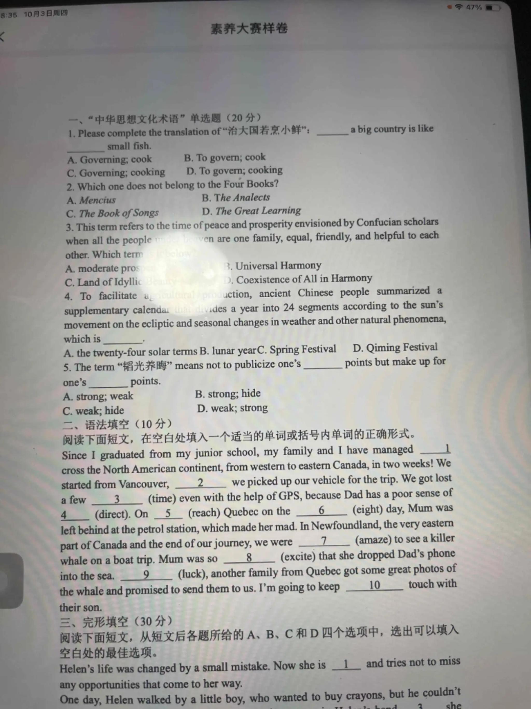 素养大赛样卷