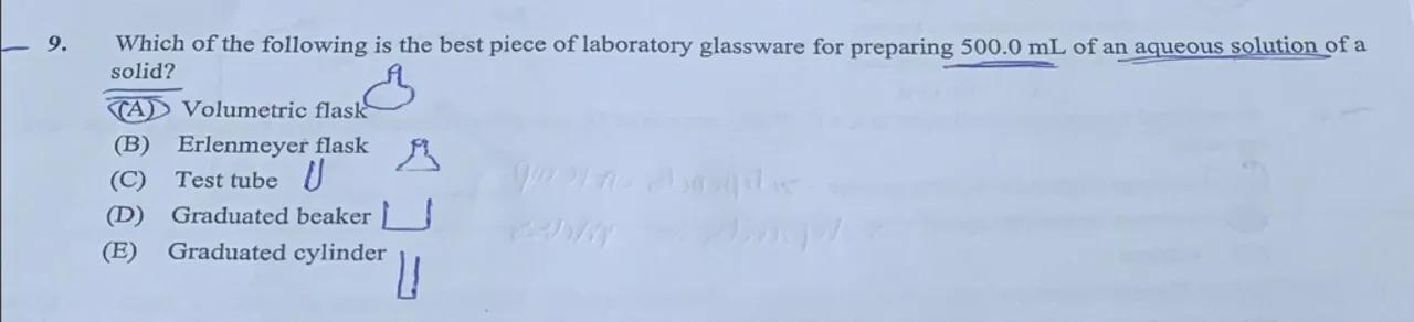 9. Which of the following is the best piece of laboratory glassware for preparing of an aqueous solution of a solid?