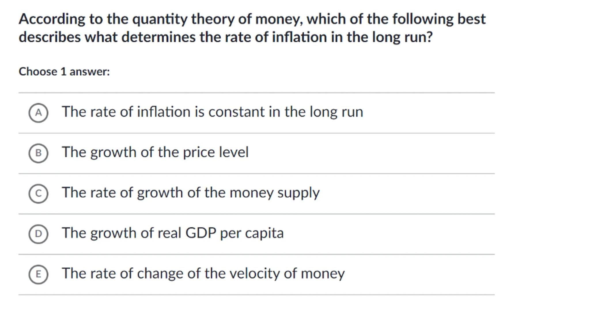 According to the quantity theory of money, which of the following best describes what determines the rate of inflation in the long run?