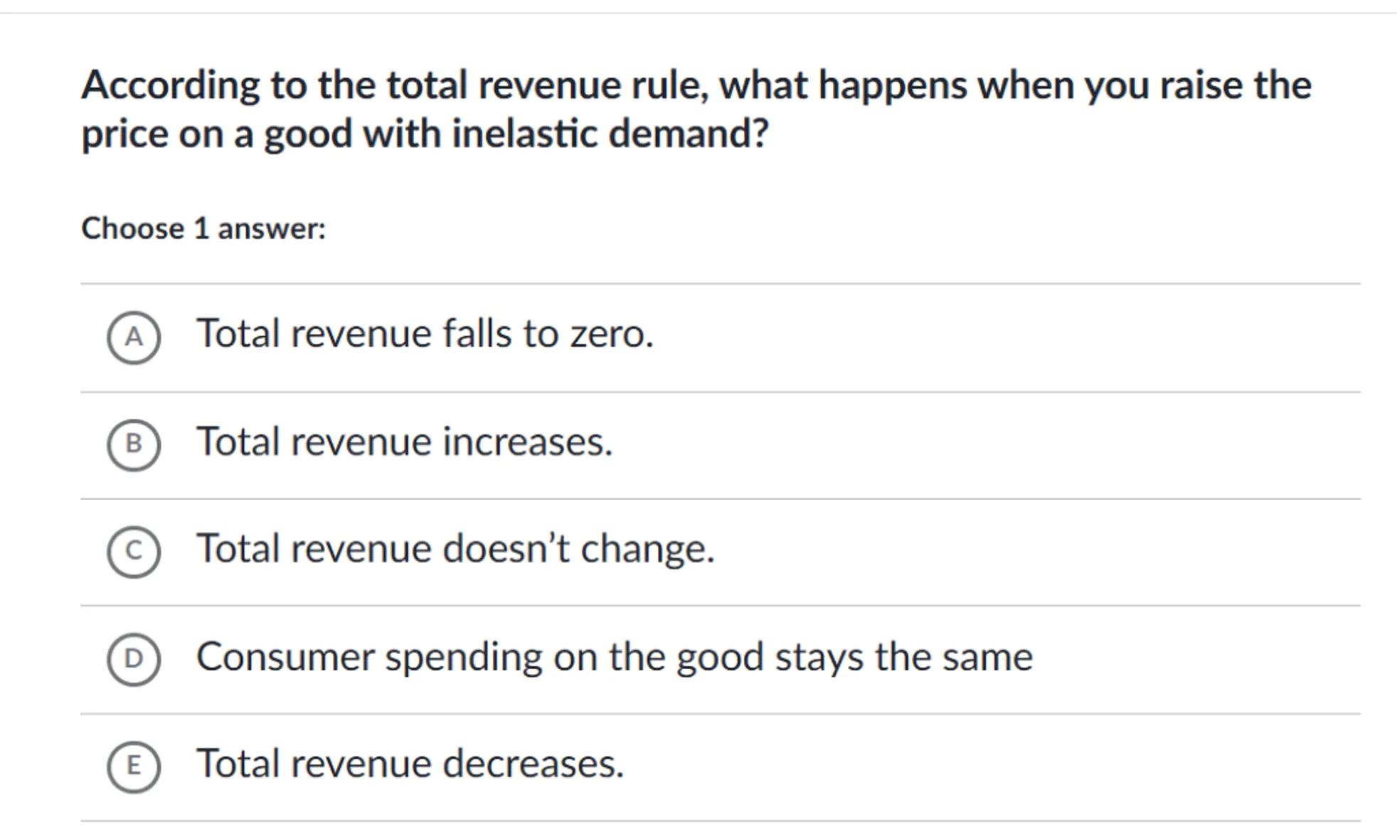 According to the total revenue rule, what happens when you raise the price on a good with inelastic demand?