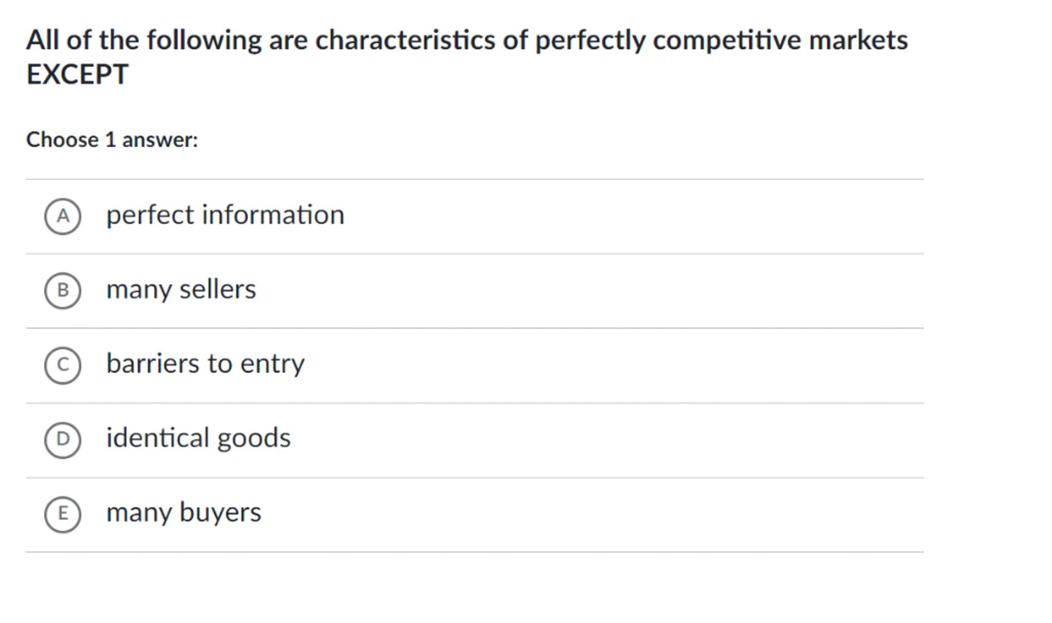 (C) barriers to entry