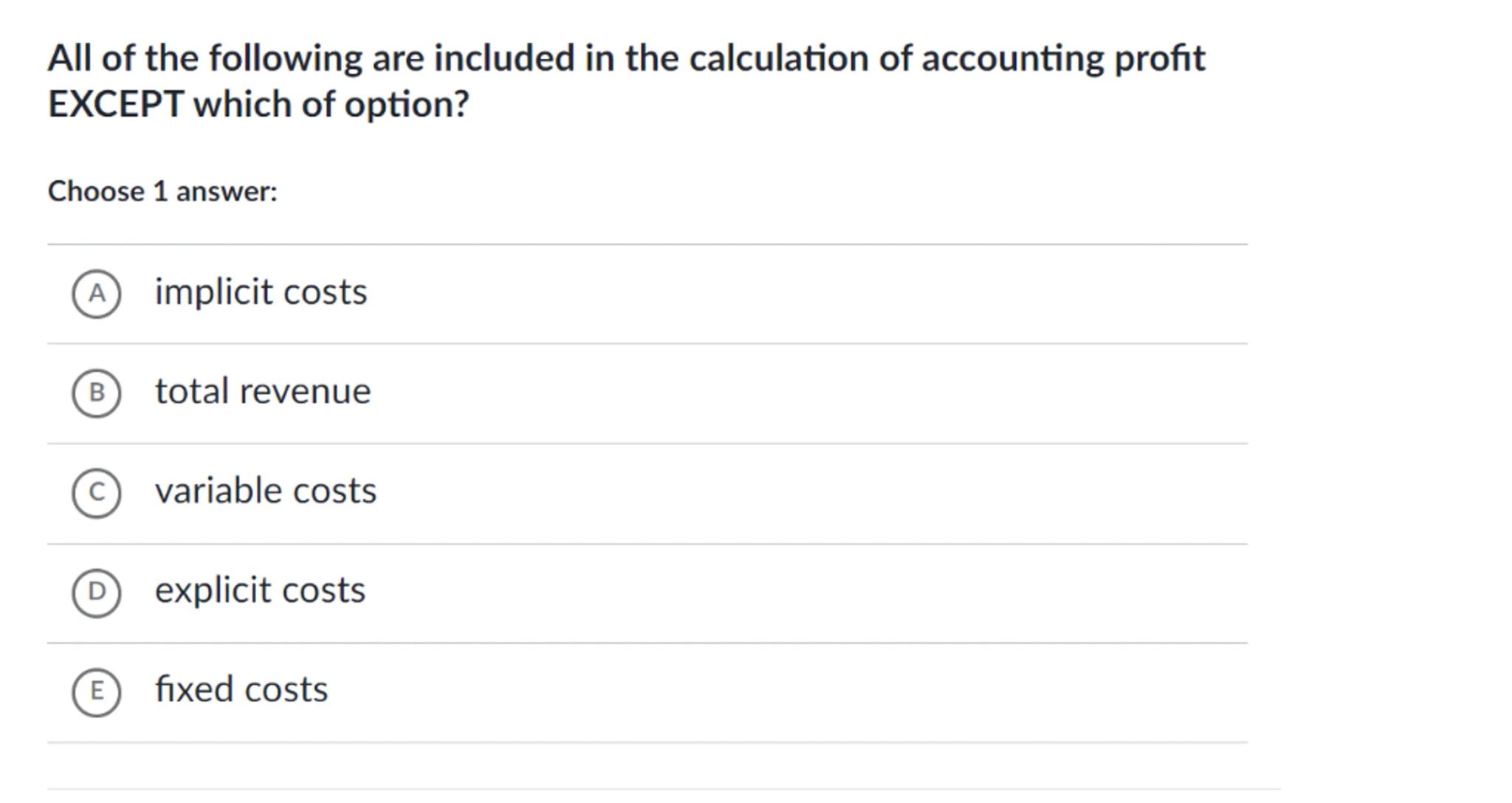 All of the following are included in the calculation of accounting profit EXCEPT which of option?