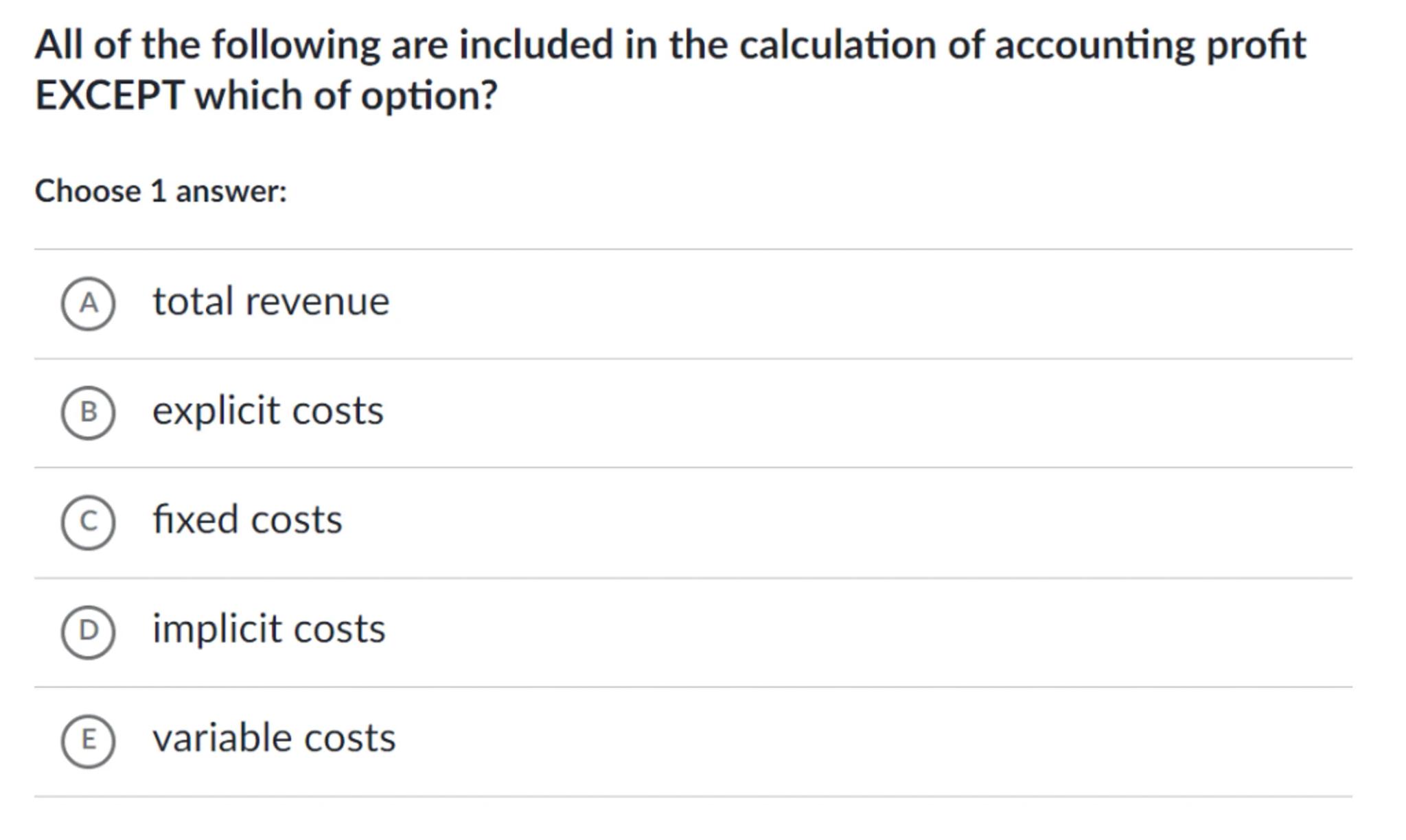 All of the following are included in the calculation of accounting profit EXCEPT which of option?