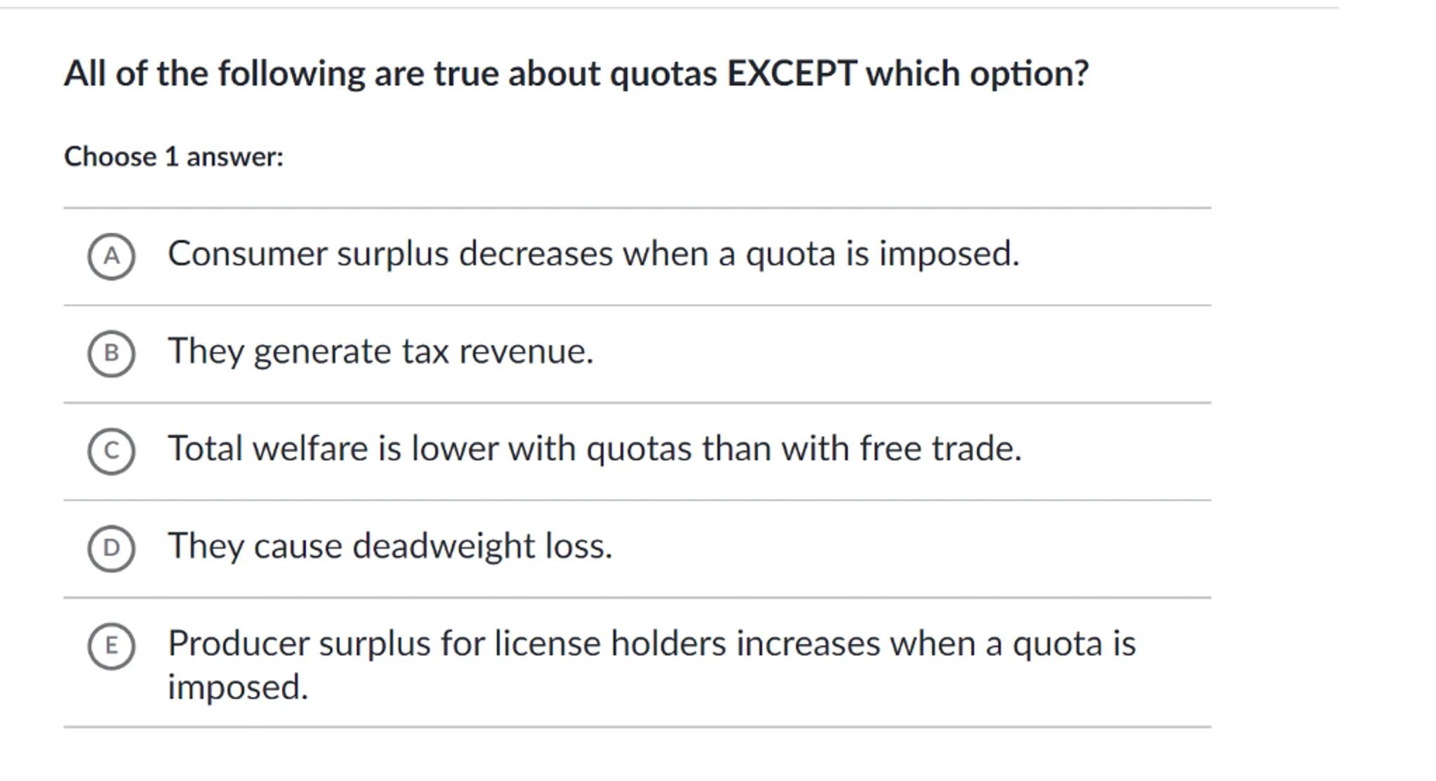 (E) Producer surplus for license holders increases when a quota is imposed.
