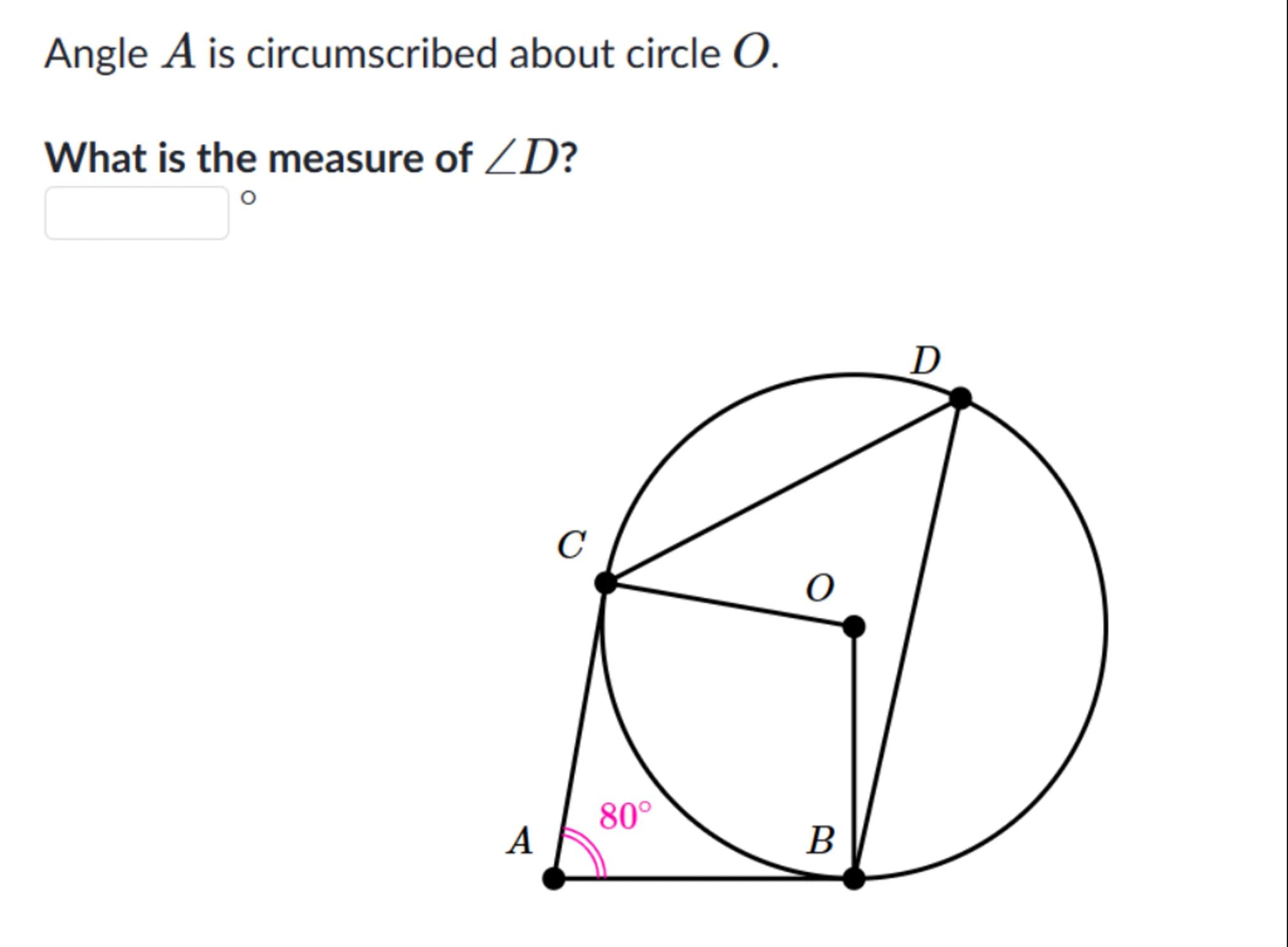 Angle is circumscribed about circle .