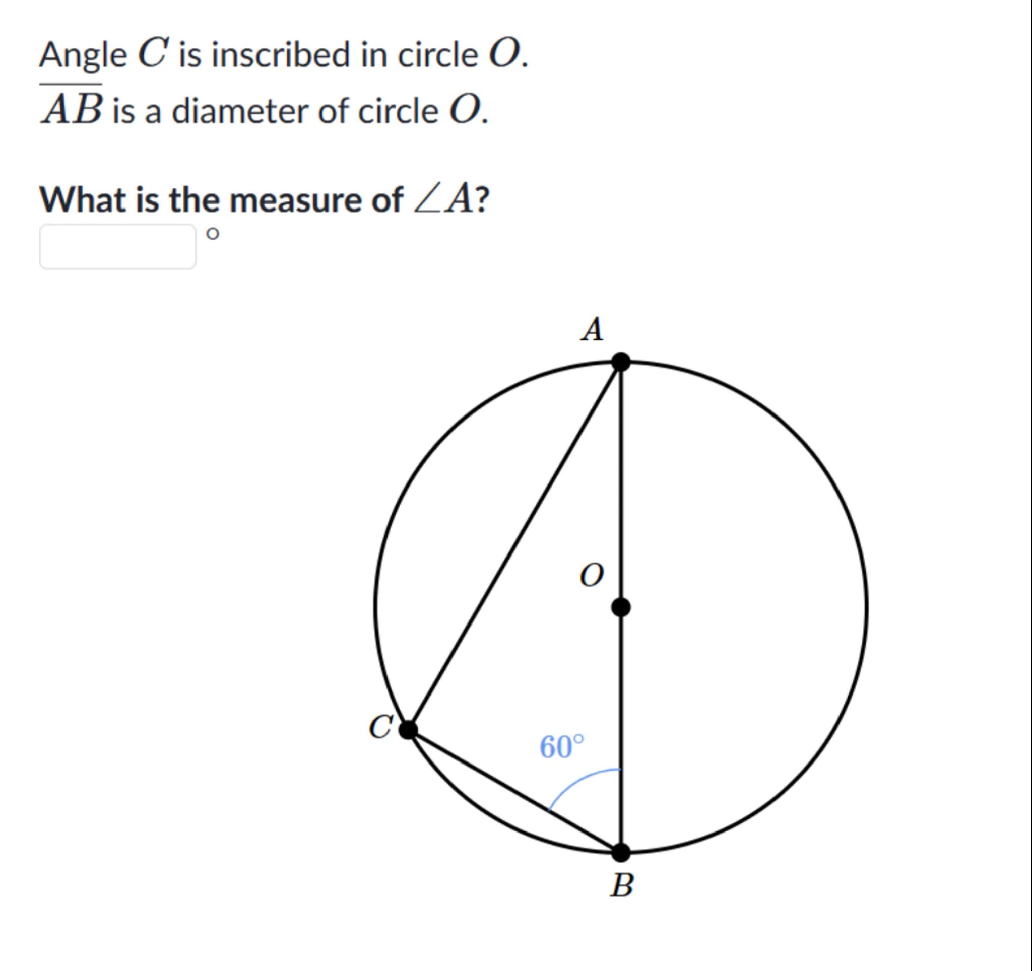 Angle is inscribed in circle .