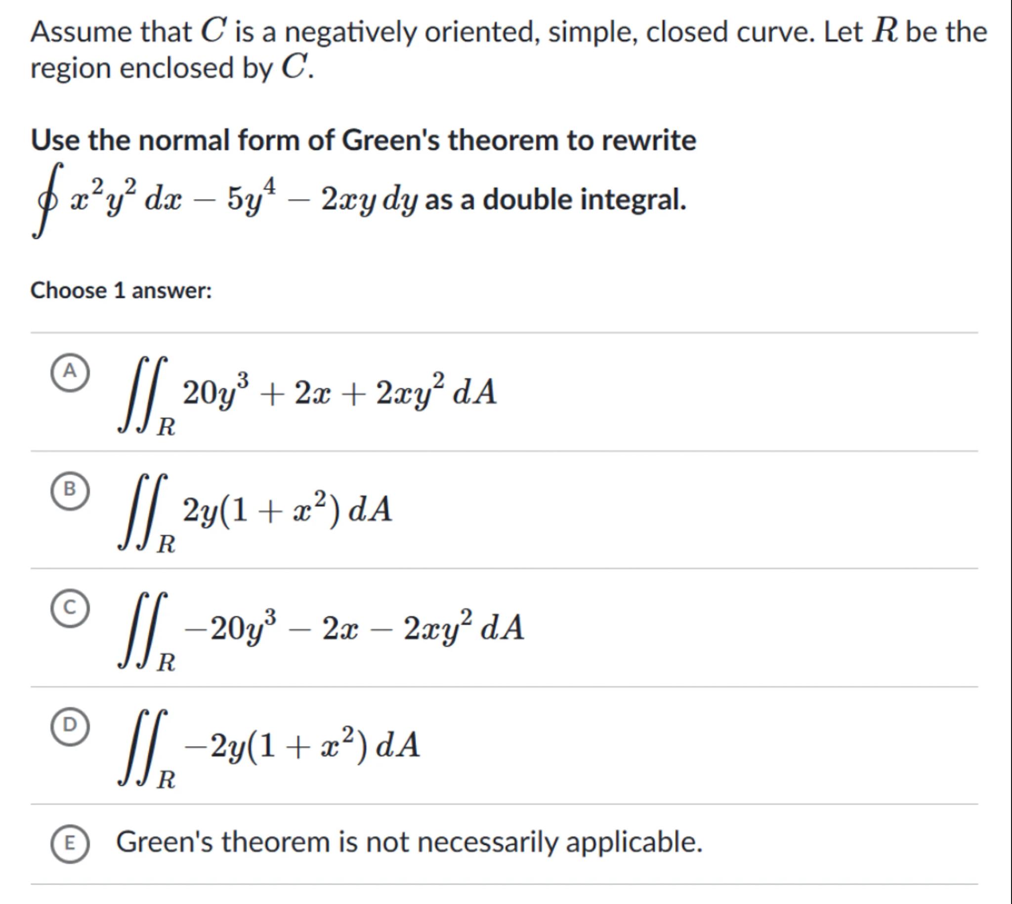 () Green's theorem is not necessarily applicable.