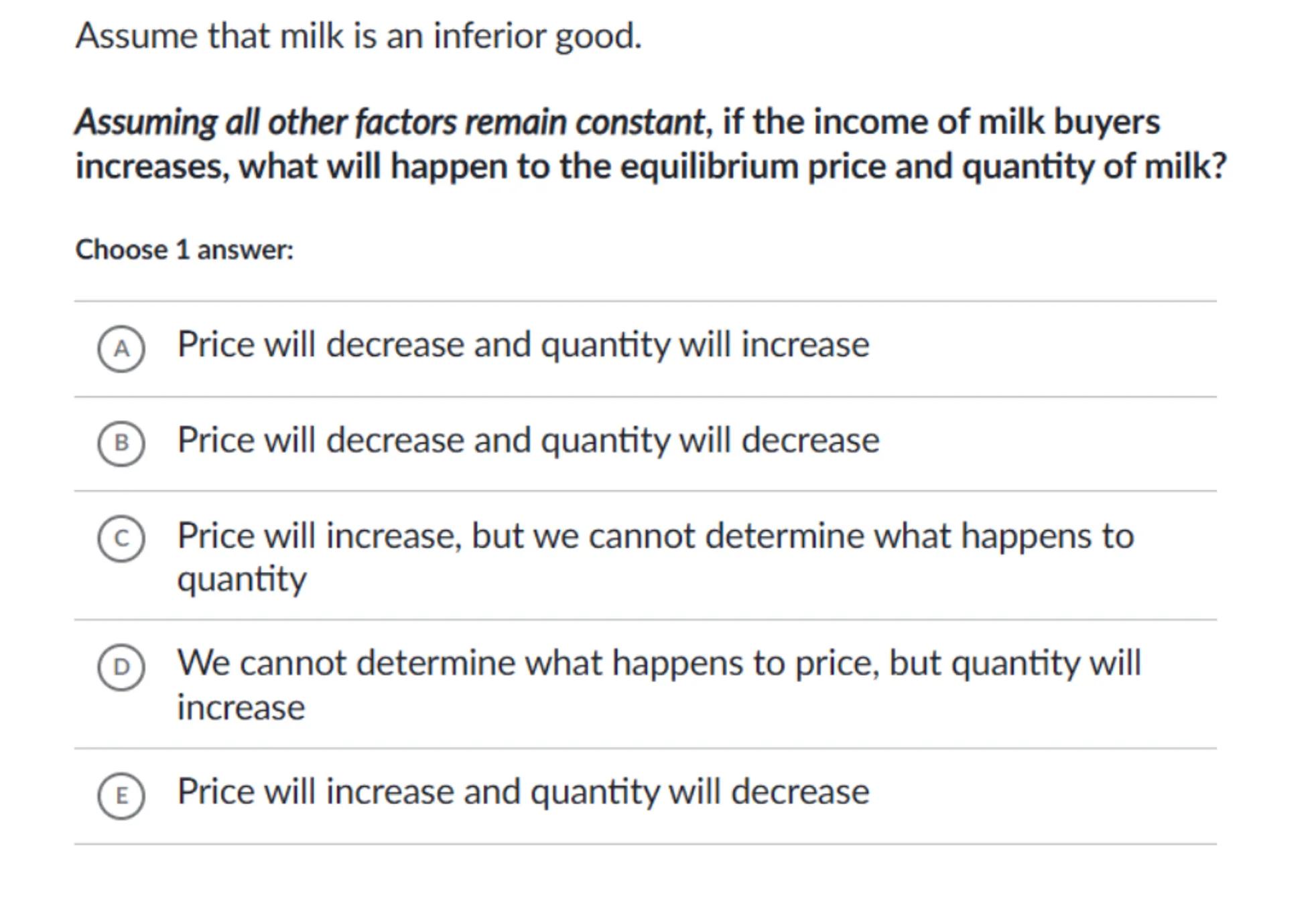Assume that milk is an inferior good.