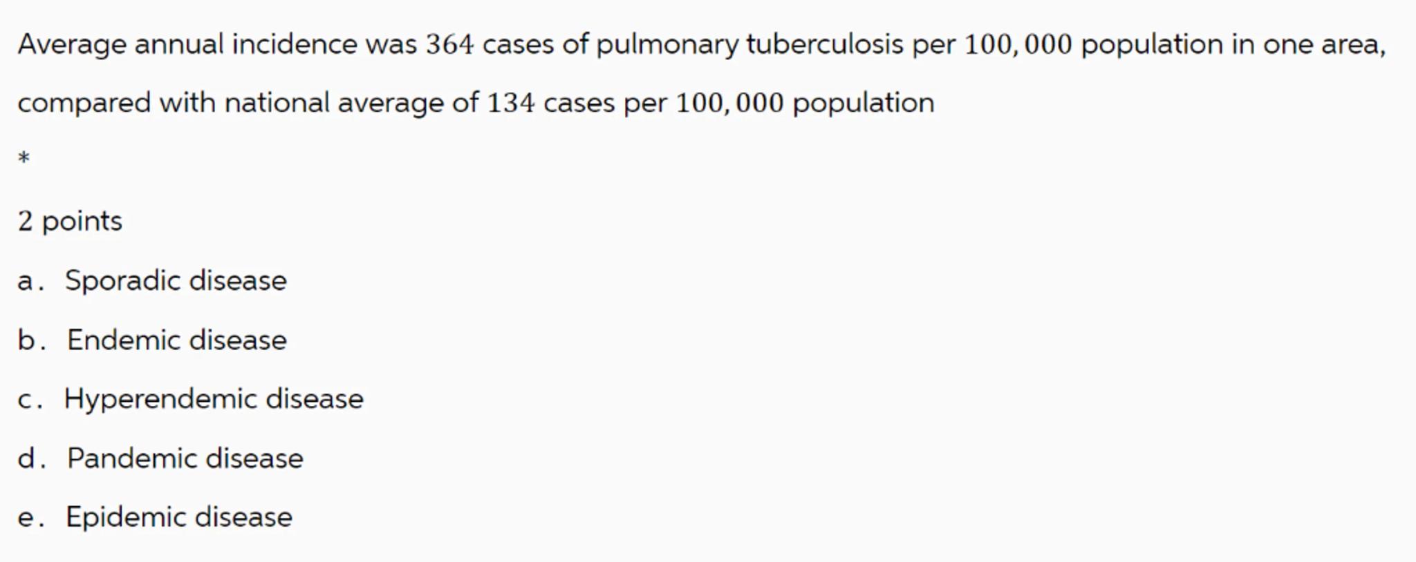 Average annual incidence was 364 cases of pulmonary tuberculosis per 100,000 population in one area, compared with national average of 134 cases per 100,000 population