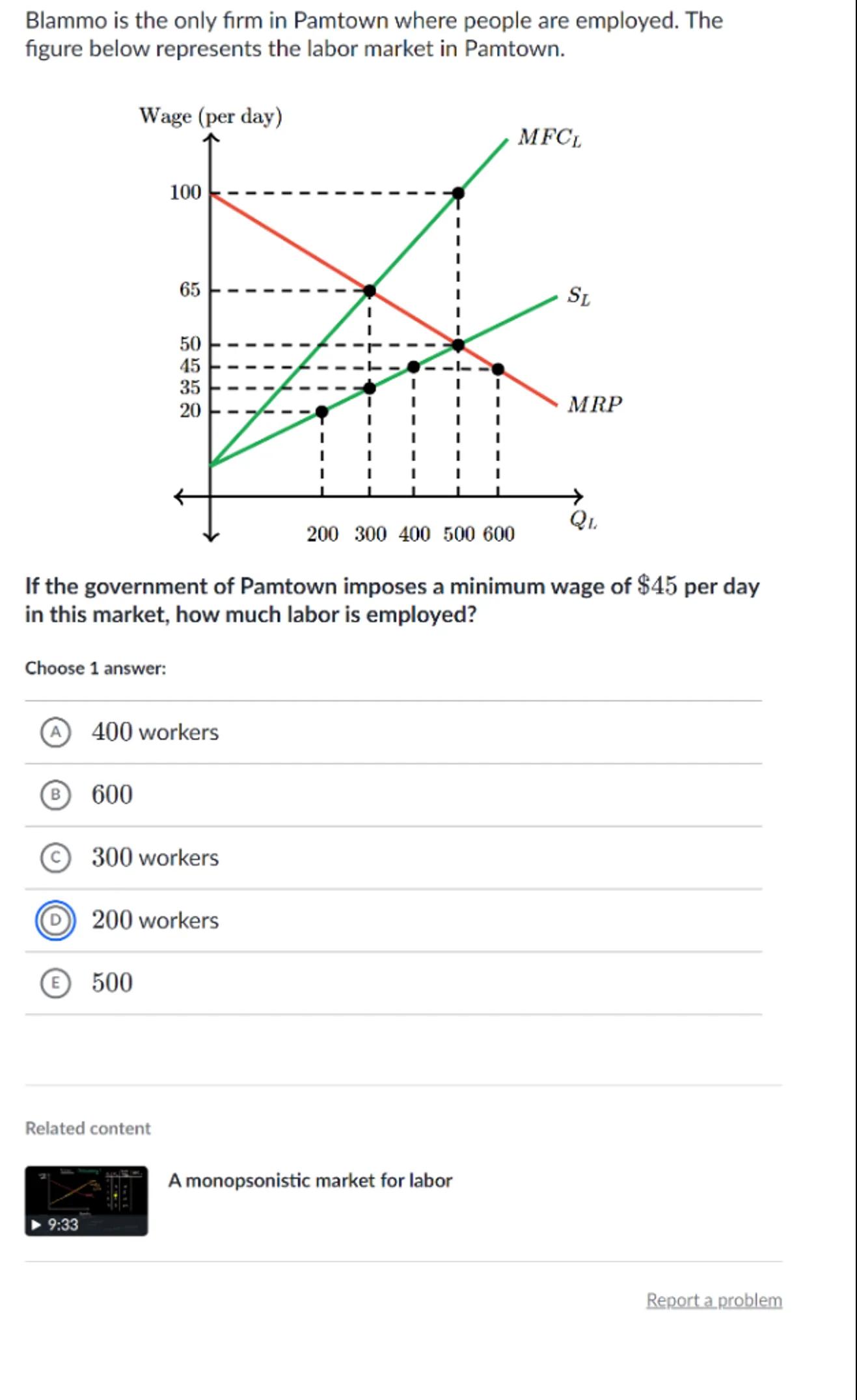 Blammo is the only firm in Pamtown where people are employed. The figure below represents the labor market in Pamtown.