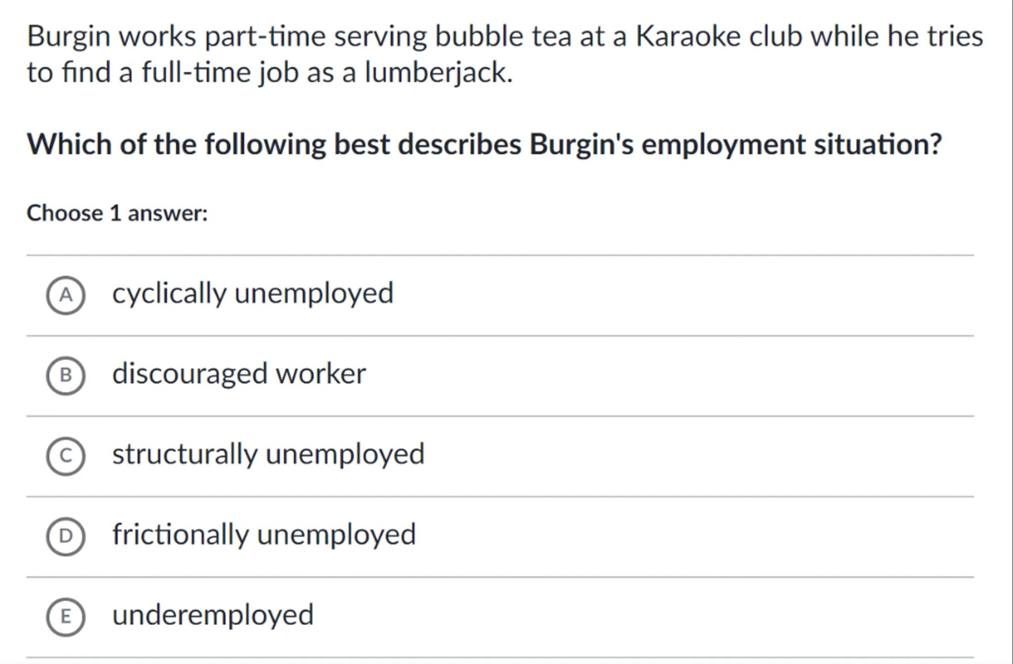 Burgin works part-time serving bubble tea at a Karaoke club while he tries to find a full-time job as a lumberjack.