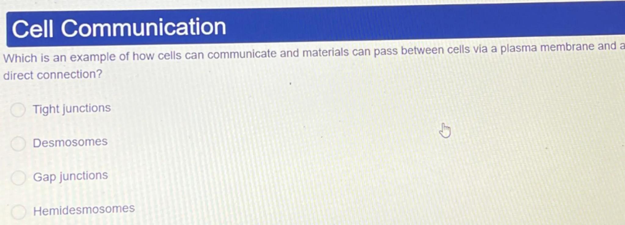 Which is an example of how cells can communicate and materials can pass between cells via a plasma membrane and a direct connection?
