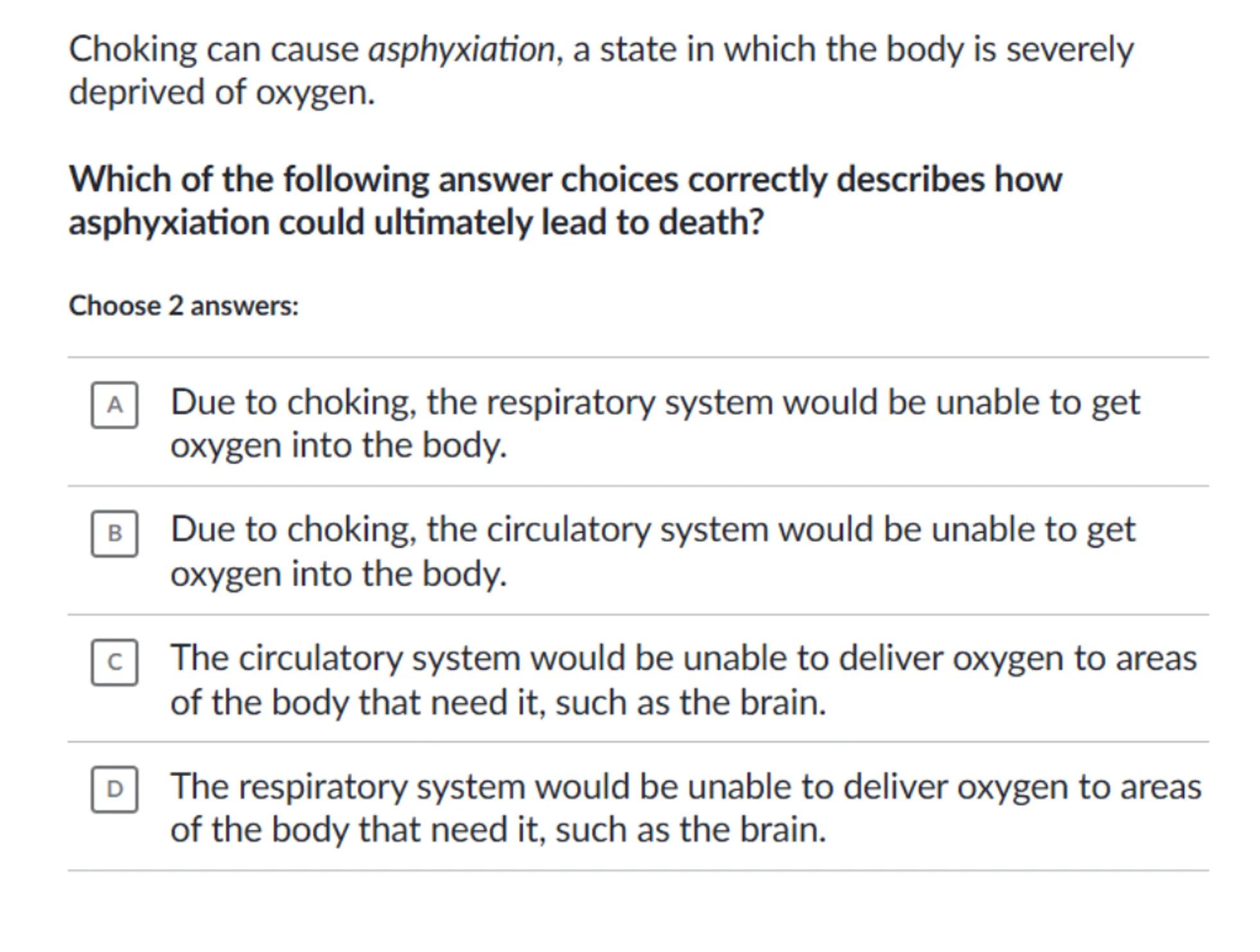 Which of the following answer choices correctly describes how asphyxiation could ultimately lead to death?