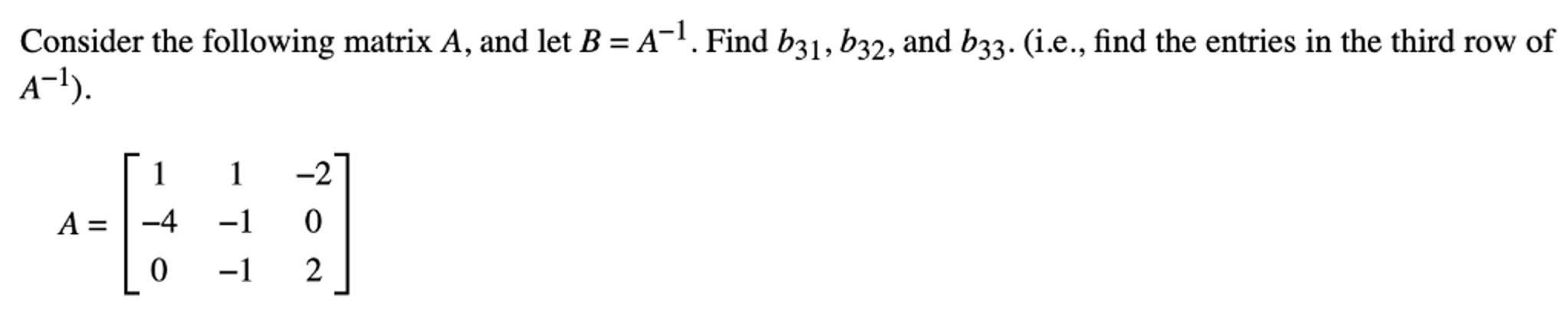 Consider the following matrix , and let . Find , and . (i.e., find the entries in the third row of  ).