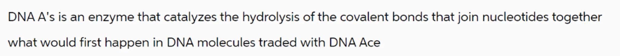 DNA A's is an enzyme that catalyzes the hydrolysis of the covalent bonds that join nucleotides together what would first happen in DNA molecules traded with DNA Ace