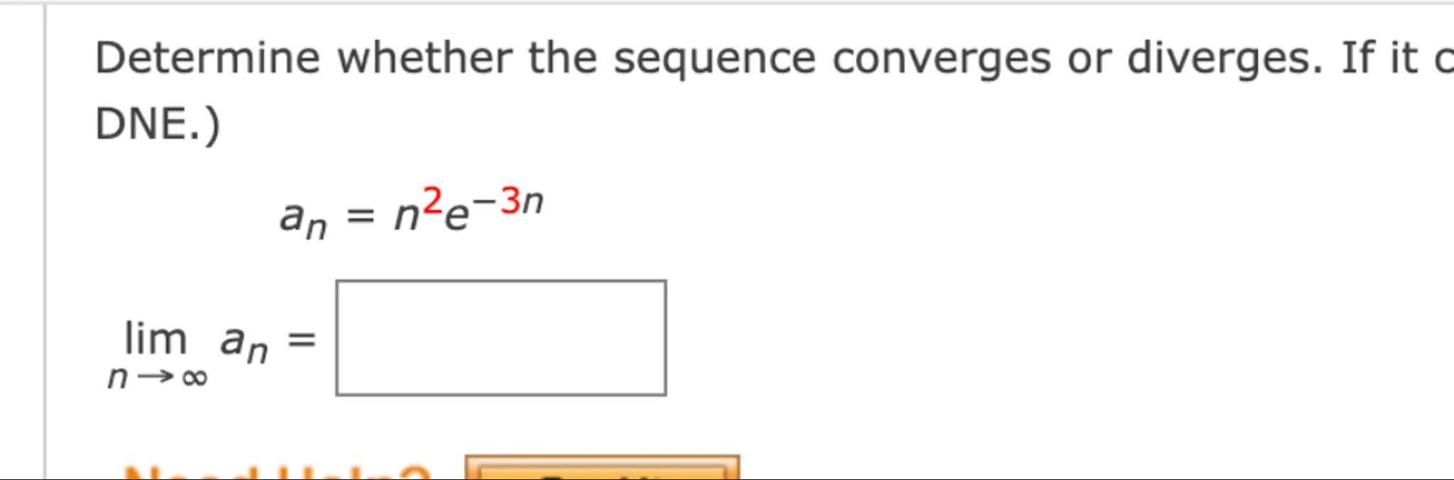 Determine whether the sequence converges or diverges. If it c DNE.)