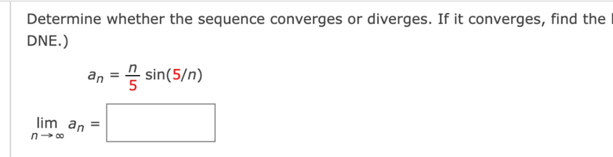 Determine whether the sequence converges or diverges. If it converges, find the DNE.)