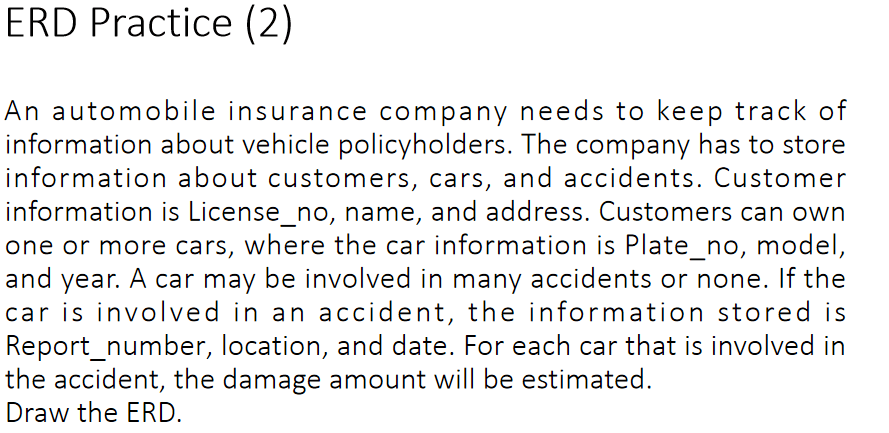 information about customers, cars, and accidents. Customer
