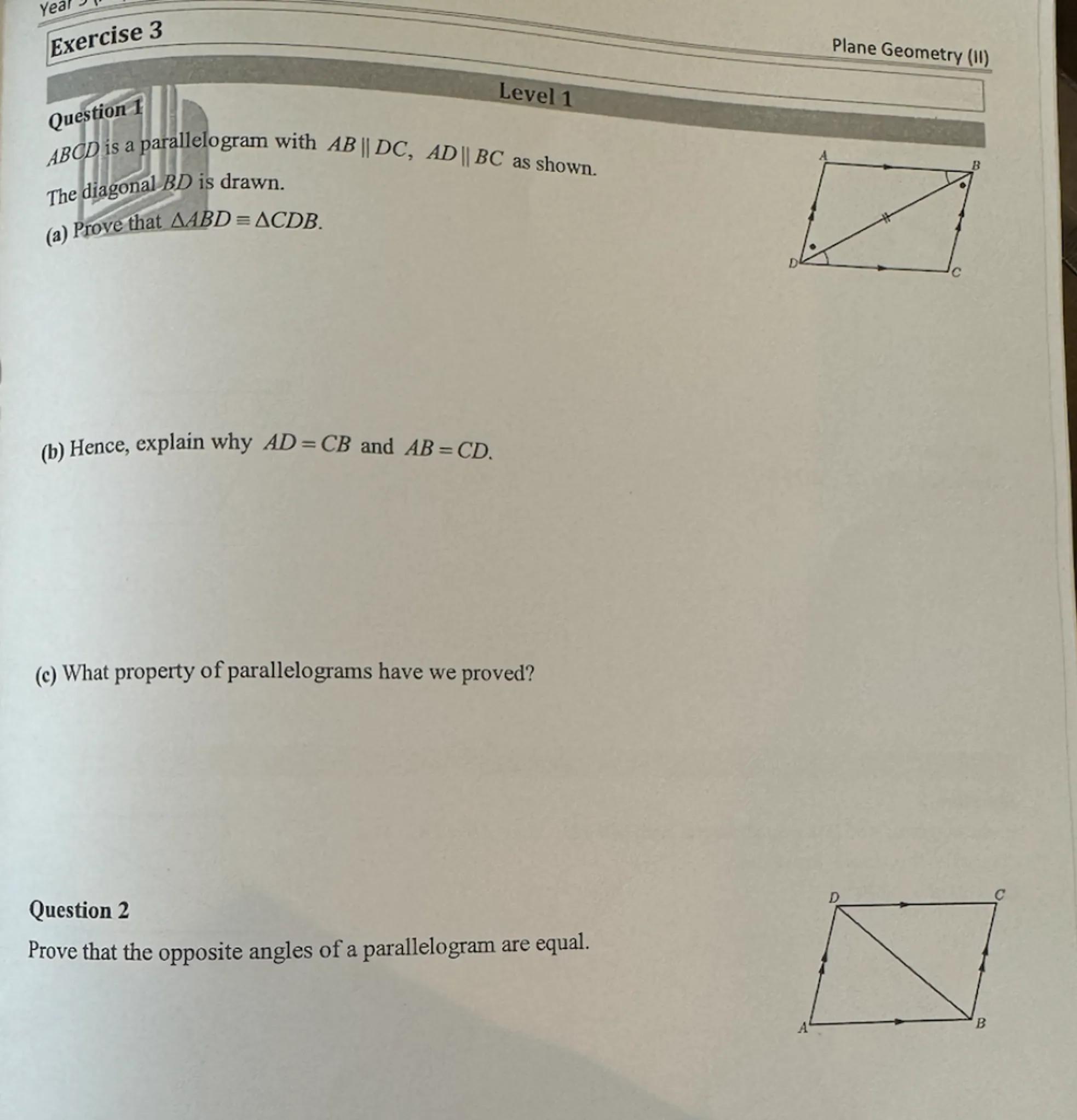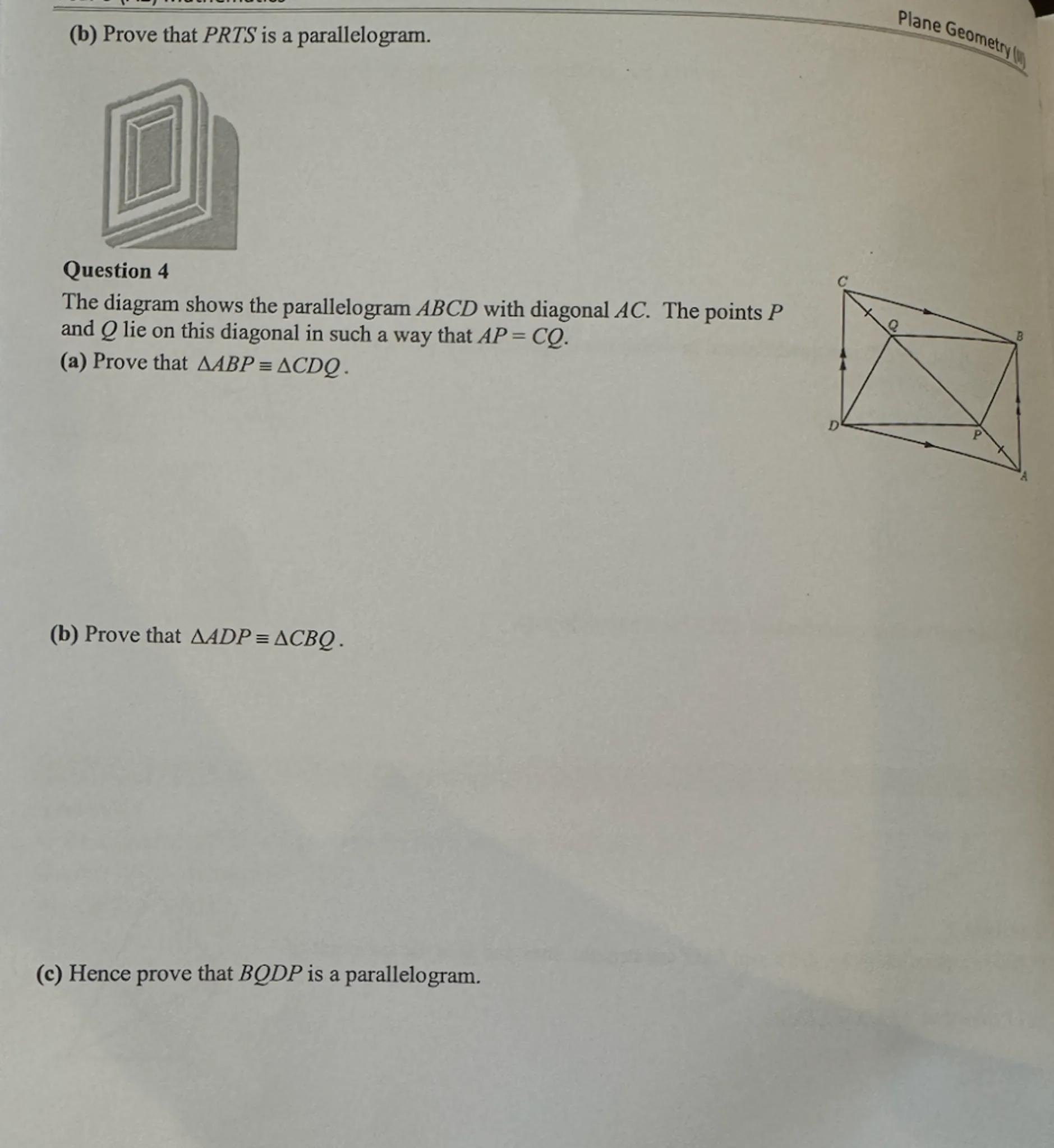 The diagram shows the parallelogram with diagonal . The points and lie on this diagonal in such a way that .