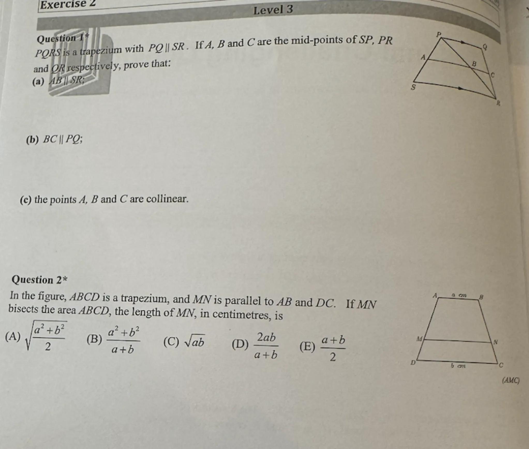 is a trapezium with . If and are the mid-points of and respectively, prove that: