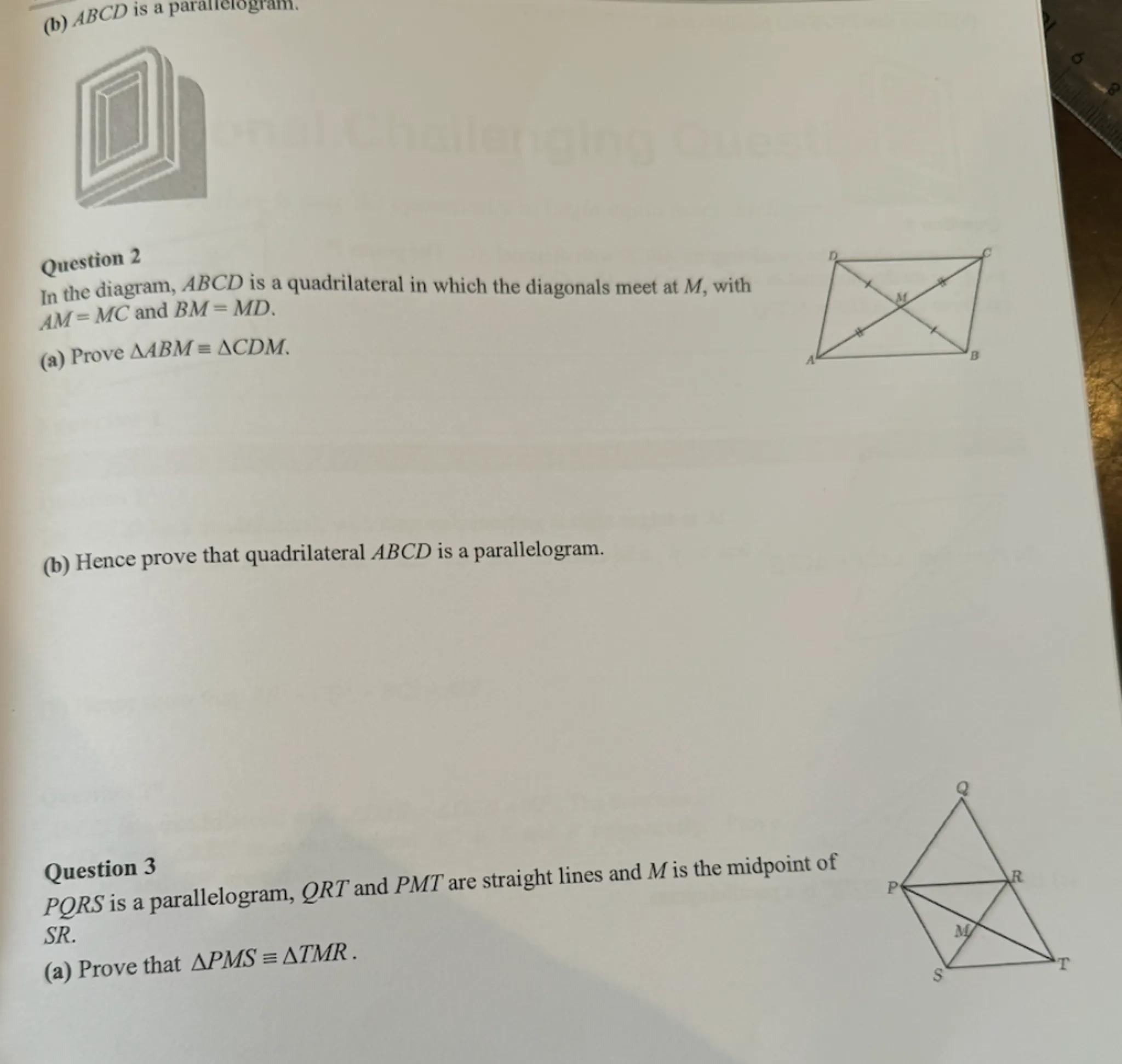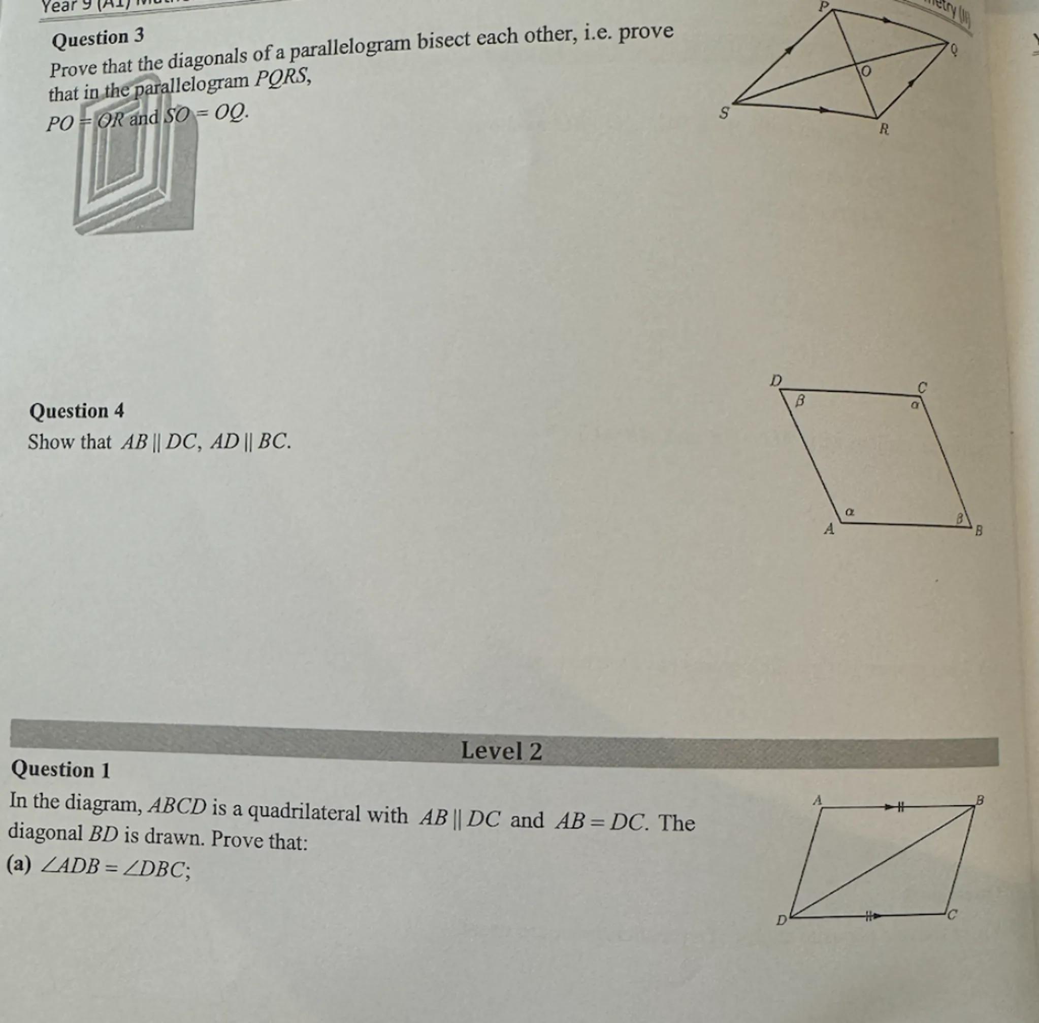 Prove that the diagonals of a parallelogram bisect each other, i.e. prove that in the parallelogram ,