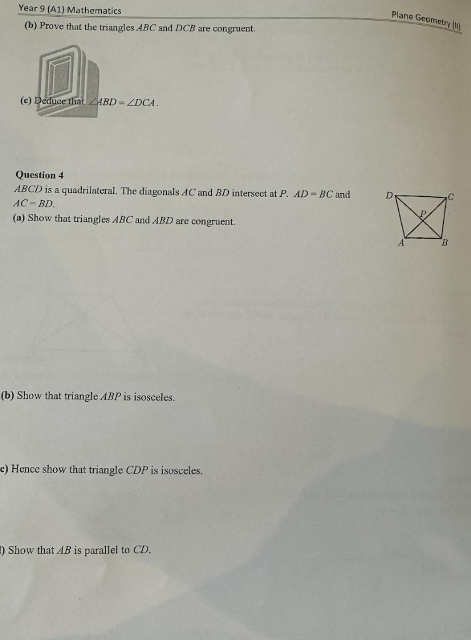 In the diagram, is a quadrilateral with and . The diagonal is drawn. Prove that: