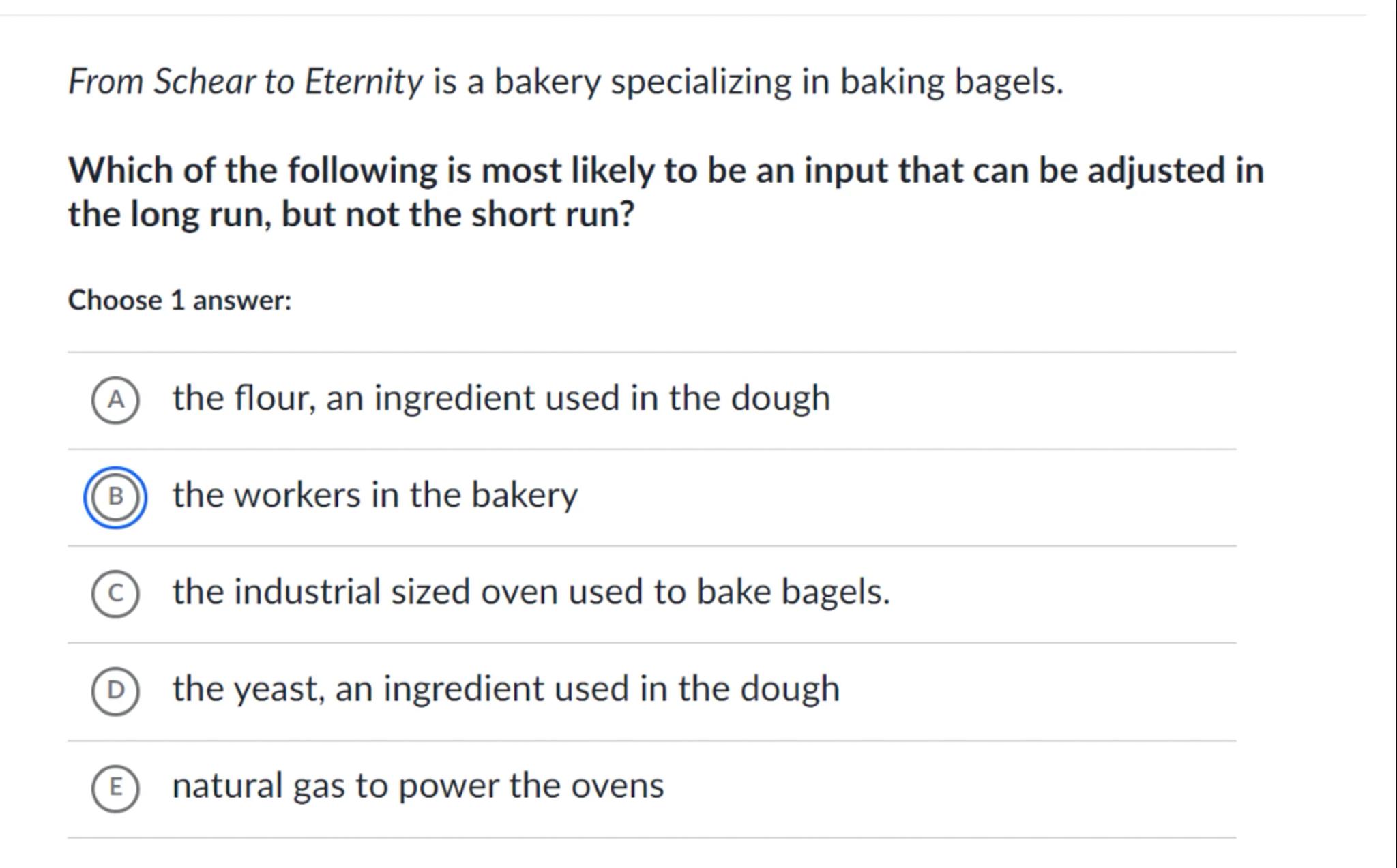 (B) the workers in the bakery