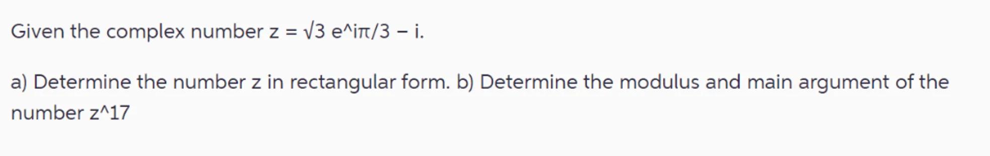 a) Determine the number in rectangular form. b) Determine the modulus and main argument of the number