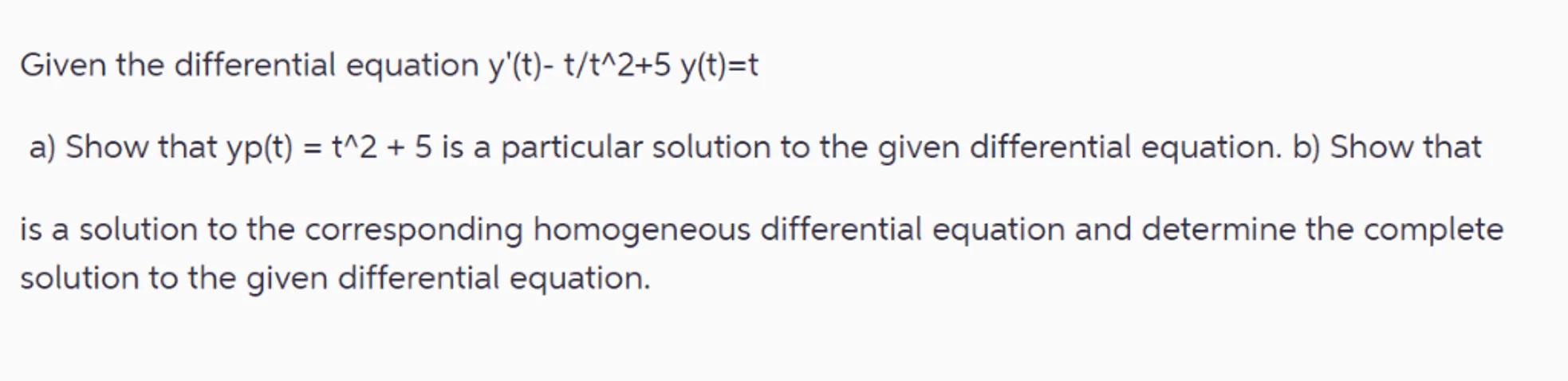 a) Show that is a particular solution to the given differential equation. b) Show that is a solution to the corresponding homogeneous differential equation and determine the complete solution to the given differential equation.