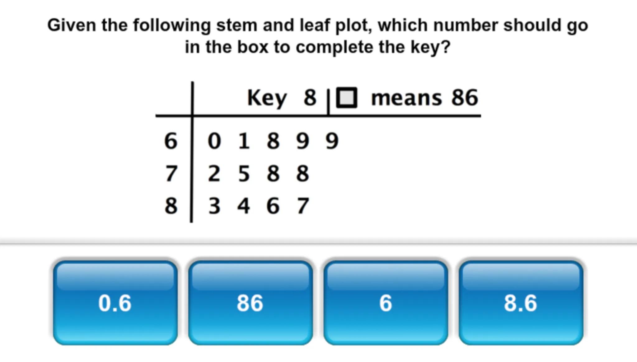 Given the following stem and leaf plot, which number should go in the box to complete the key?