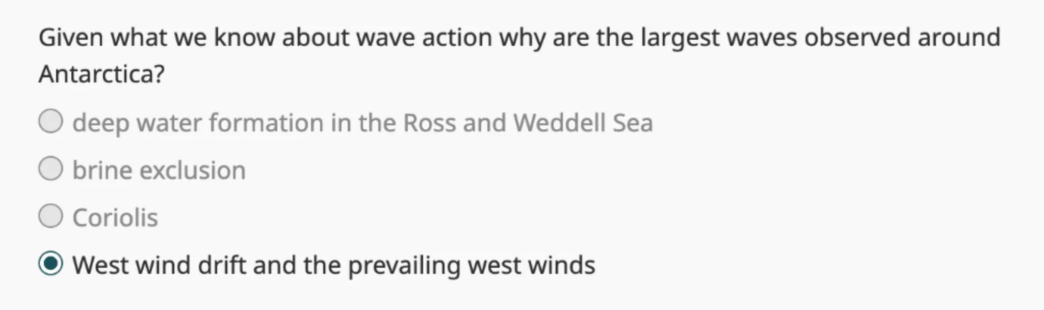 Given what we know about wave action why are the largest waves observed around Antarctica?
