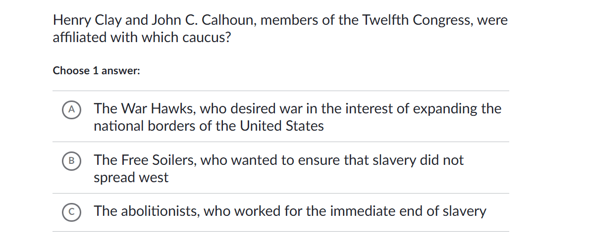 Henry Clay and John C. Calhoun, members of the Twelfth Congress, were