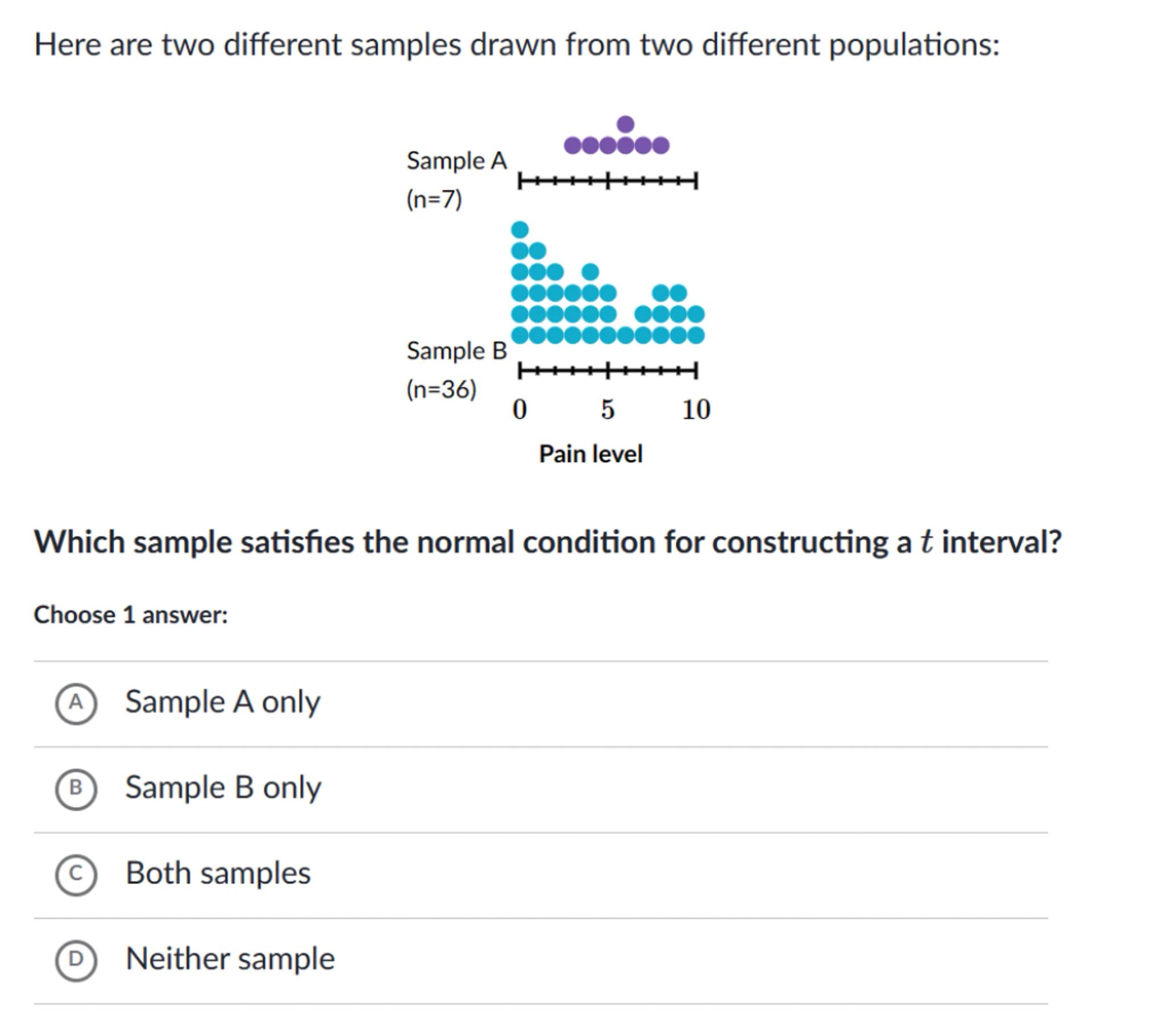 Which sample satisfies the normal condition for constructing a interval?