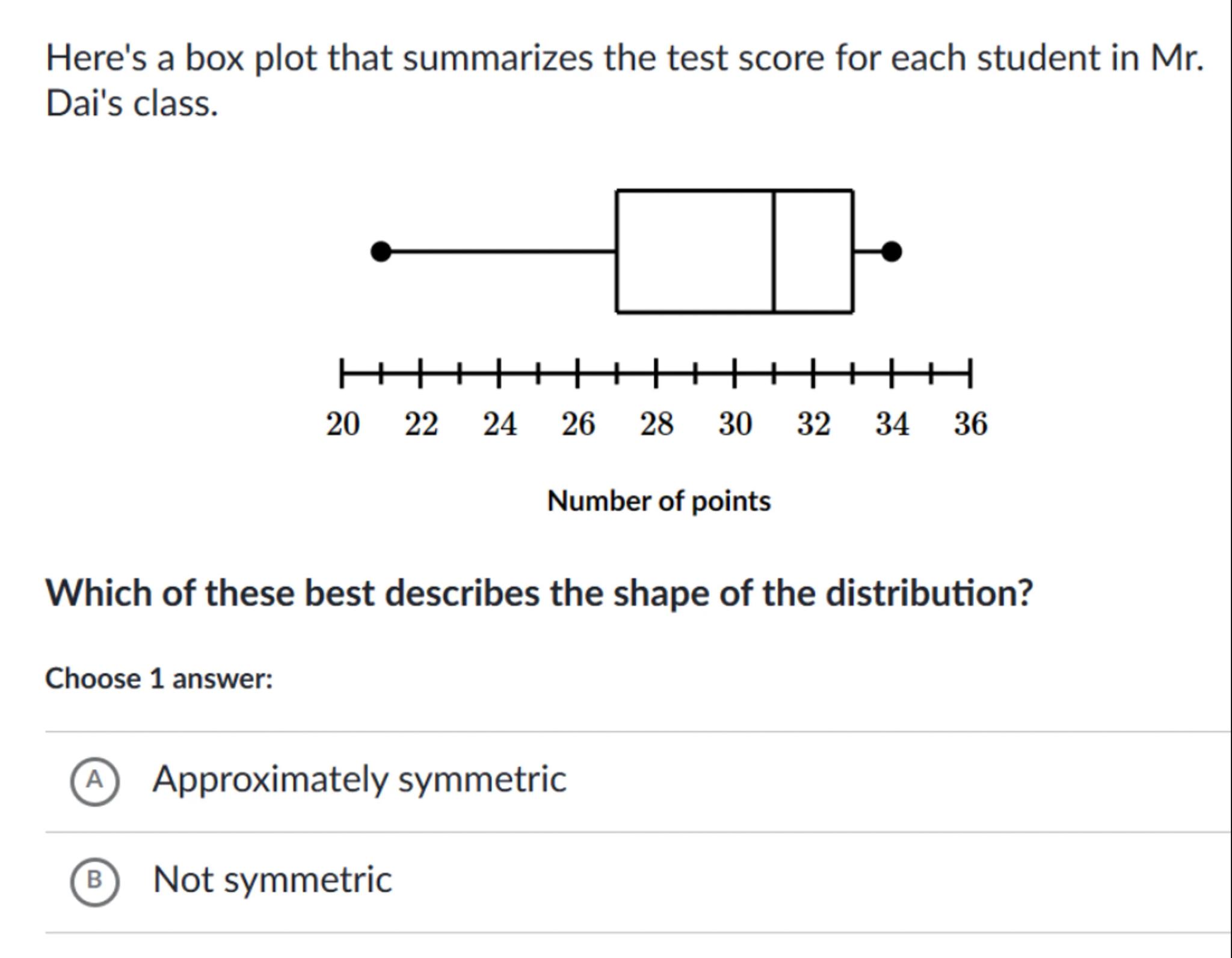 Here's a box plot that summarizes the test score for each student in Mr. Dai's class.