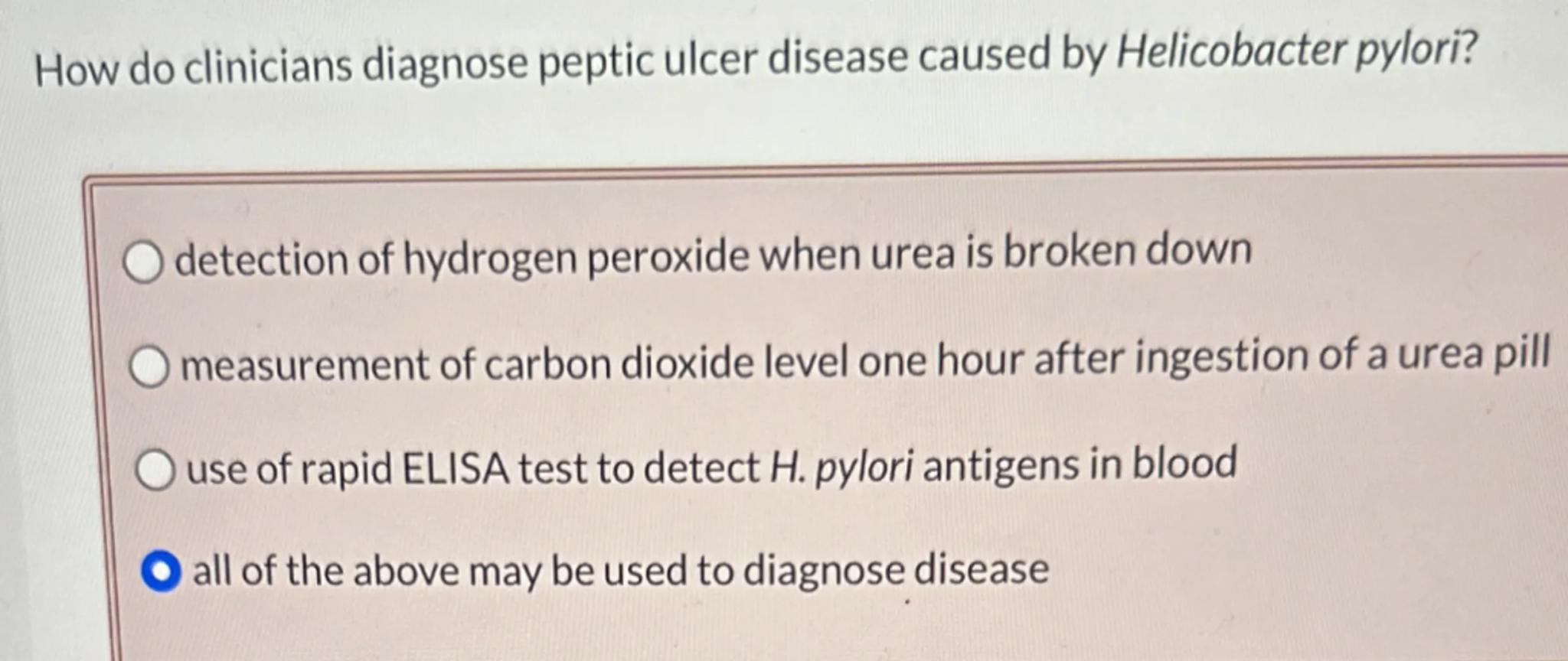 How do clinicians diagnose peptic ulcer disease caused by Helicobacter pylori?