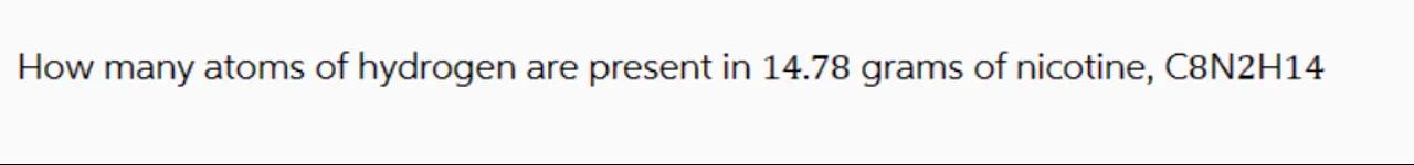 How many atoms of hydrogen are present in 14.78 grams of nicotine,